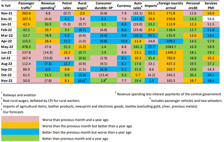 Quick indicators such as electricity demand, GST collections, etc are all buoyant. Some discretionary categories such as QSR are reporting a slowdown but this should mostly be on account of more spending avenues opening up as the economy normalizes after Covid. The past period has seen economic growth being led by the more affluent sections of society. Adding to this, sales of high-end goods and services have grown much better (SUV vs small car, expensive houses vs mass market houses). Housing prices are sustaining and their sales volumes are also high. In the coming period, as the migrants to cities rebuild their incomes, their consumption should broaden the overall pie and drive Indian growth forward.